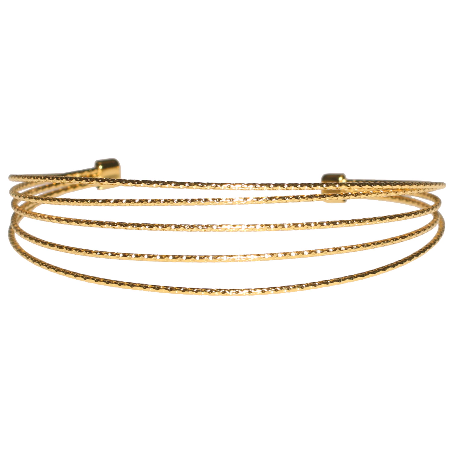 Description Bracelet jonc multi rangs ouvert en acier doré. Largeur 16 mm Diamètre 60 mm [Guide des tailles] Matière(s) Acier . L'acier utilisé dans la bijouterie existe sous plusieurs qualités. Nous utilisons principalement la qualité 316L, qualité qui est utilisée en chirurgie. Cet acier est donc inoxydable et reste très résistant. Fermoir Aucun Couleur(s) dominante(s) Doré Public Adolescent , Adulte . Genre Femme , Fille . Saison Indémodable . Cliquez sur une matière, un thème, une couleur ou une collection pour voir tous les articles associés.
