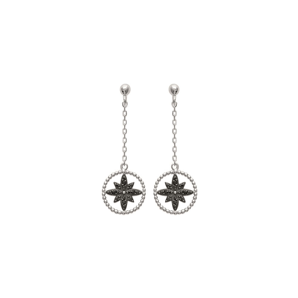 Boucles d'oreilles en argent 925/000 rhodié et pierres synthétiques.