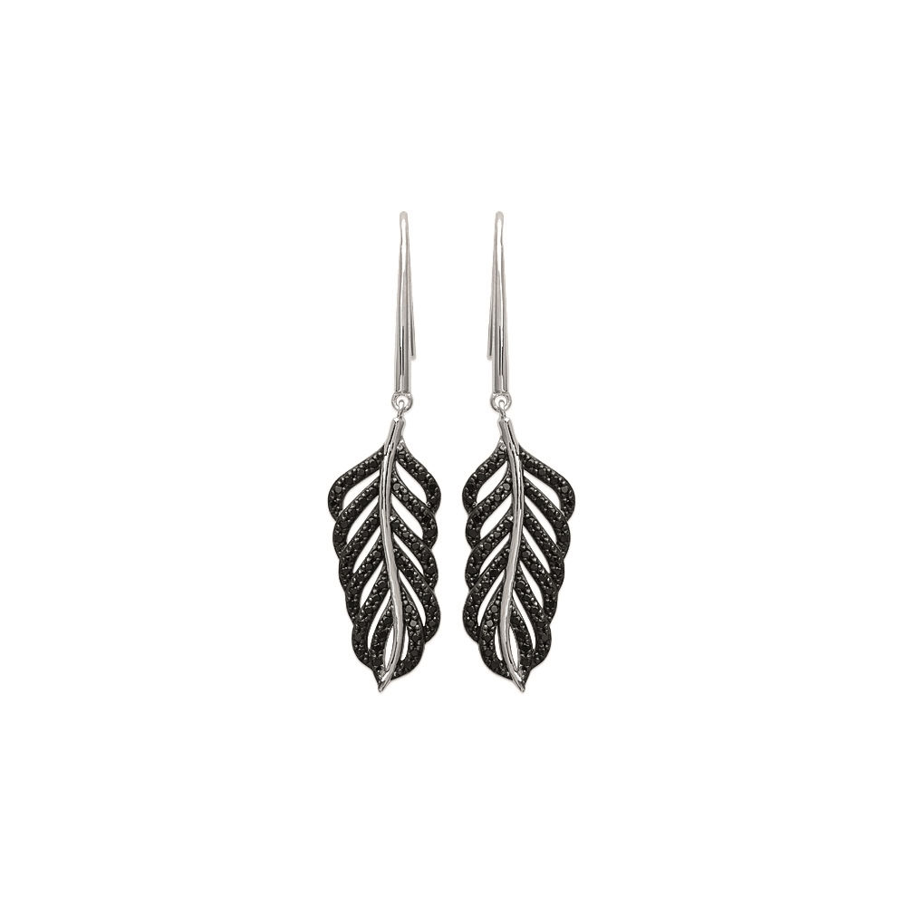 Boucles d'oreilles feuilles en argent 925/000 rhodié et pierres synthétiques.