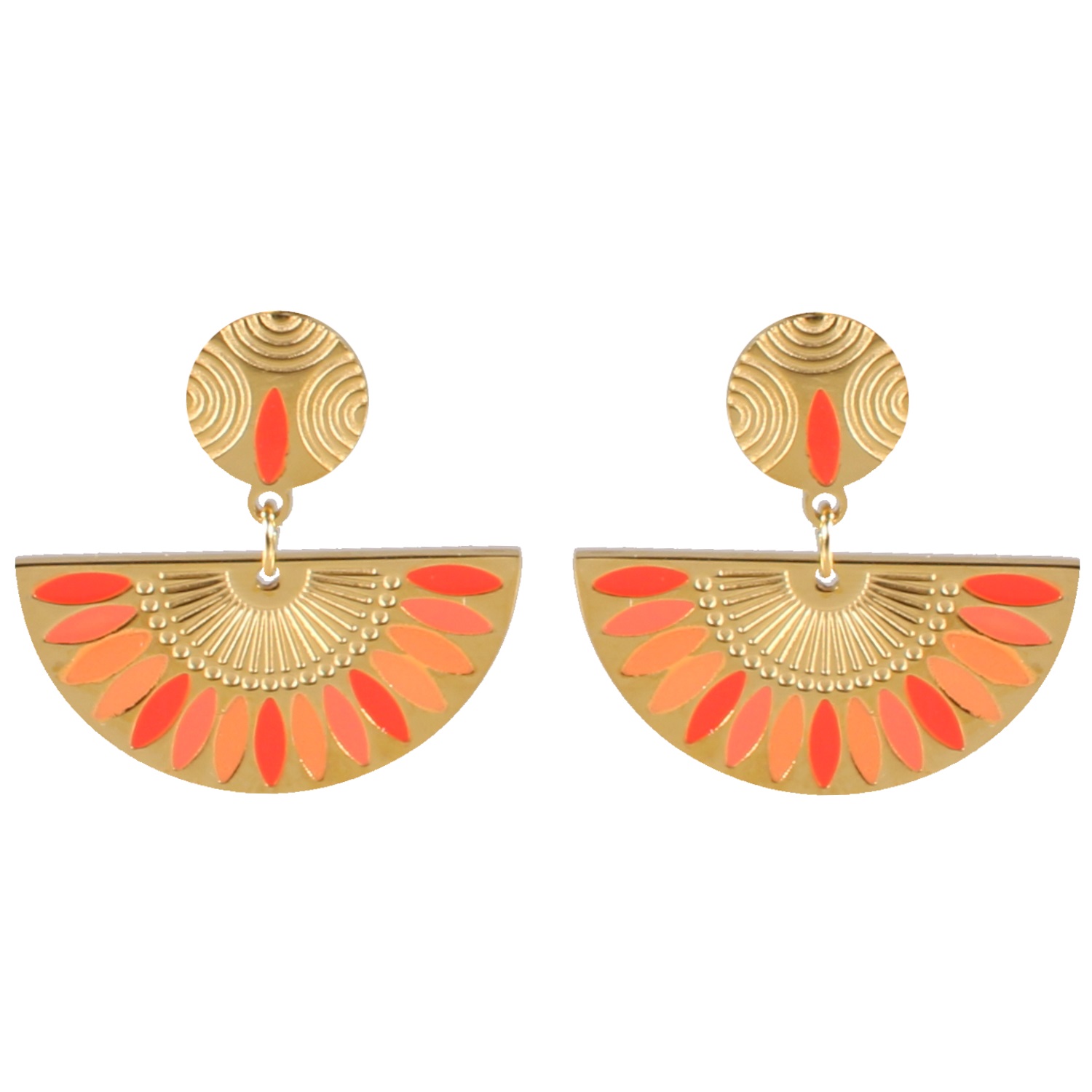 Description Boucles d'oreilles pendantes composées de puce ronde et d'un demi rond pendant au motif d'éventail en acier doré et émail de couleur. Largeur 22 mm Hauteur 22 mm Matière(s) Acier , Email . L'acier utilisé dans la bijouterie existe sous plusieurs qualités. Nous utilisons principalement la qualité 316L, qualité qui est utilisée en chirurgie. Cet acier est donc inoxydable et reste très résistant. Fermoir Tiges poussettes Couleur(s) dominante(s) Doré , Rouge Public Adolescent , Adulte . Genre Femme , Fille . Saison Eté , Printemps . Cliquez sur une matière, un thème, une couleur ou une collection pour voir tous les articles associés.