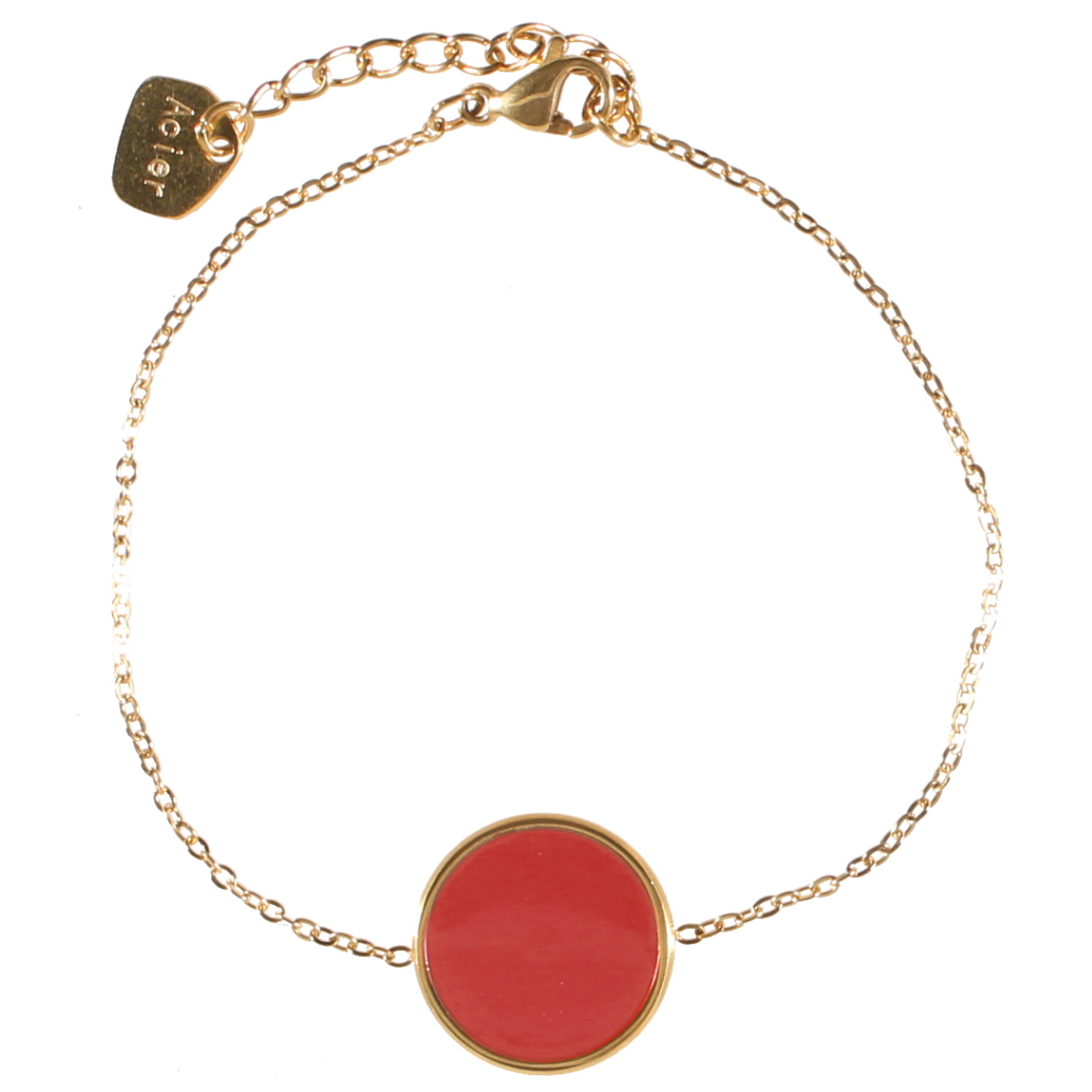 Description Bracelet composé d'une chaîne en acier doré et d'une pastille ronde pavée d'émail de couleur rouge. Fermoir mousqueton avec 3 cm de rallonge. Longueur 16+3 cm [Guide des tailles] Largeur 15 mm Matière(s) Acier , Email . L'acier utilisé dans la bijouterie existe sous plusieurs qualités. Nous utilisons principalement la qualité 316L, qualité qui est utilisée en chirurgie. Cet acier est donc inoxydable et reste très résistant. Fermoir Mousqueton Couleur(s) dominante(s) Doré , Rouge Public Adolescent , Adulte . Genre Femme , Fille . Saison Indémodable . Cliquez sur une matière, un thème, une couleur ou une collection pour voir tous les articles associés.