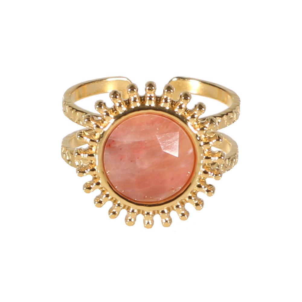 Description Bague double rangs surmontée d'un soleil en acier doré serti d'une véritable pierre de rhodonite. Taille ajustable. Largeur 16 mm Matière(s) Acier , Pierre naturelle . L'acier utilisé dans la bijouterie existe sous plusieurs qualités. Nous utilisons principalement la qualité 316L, qualité qui est utilisée en chirurgie. Cet acier est donc inoxydable et reste très résistant. Fermoir Aucun Couleur(s) dominante(s) Doré , Rose , Vert Public Adolescent , Adulte . Genre Femme , Fille . Saison Indémodable . Thème(s) Nature . Cliquez sur une matière, un thème, une couleur ou une collection pour voir tous les articles associés.