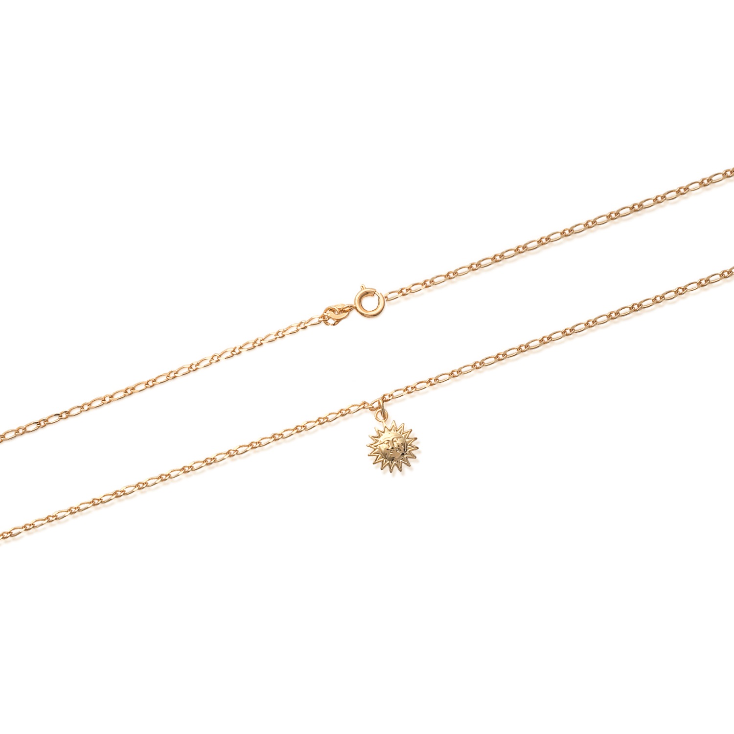 Chaîne cheville soleil en plaqué or jaune 18 carats.