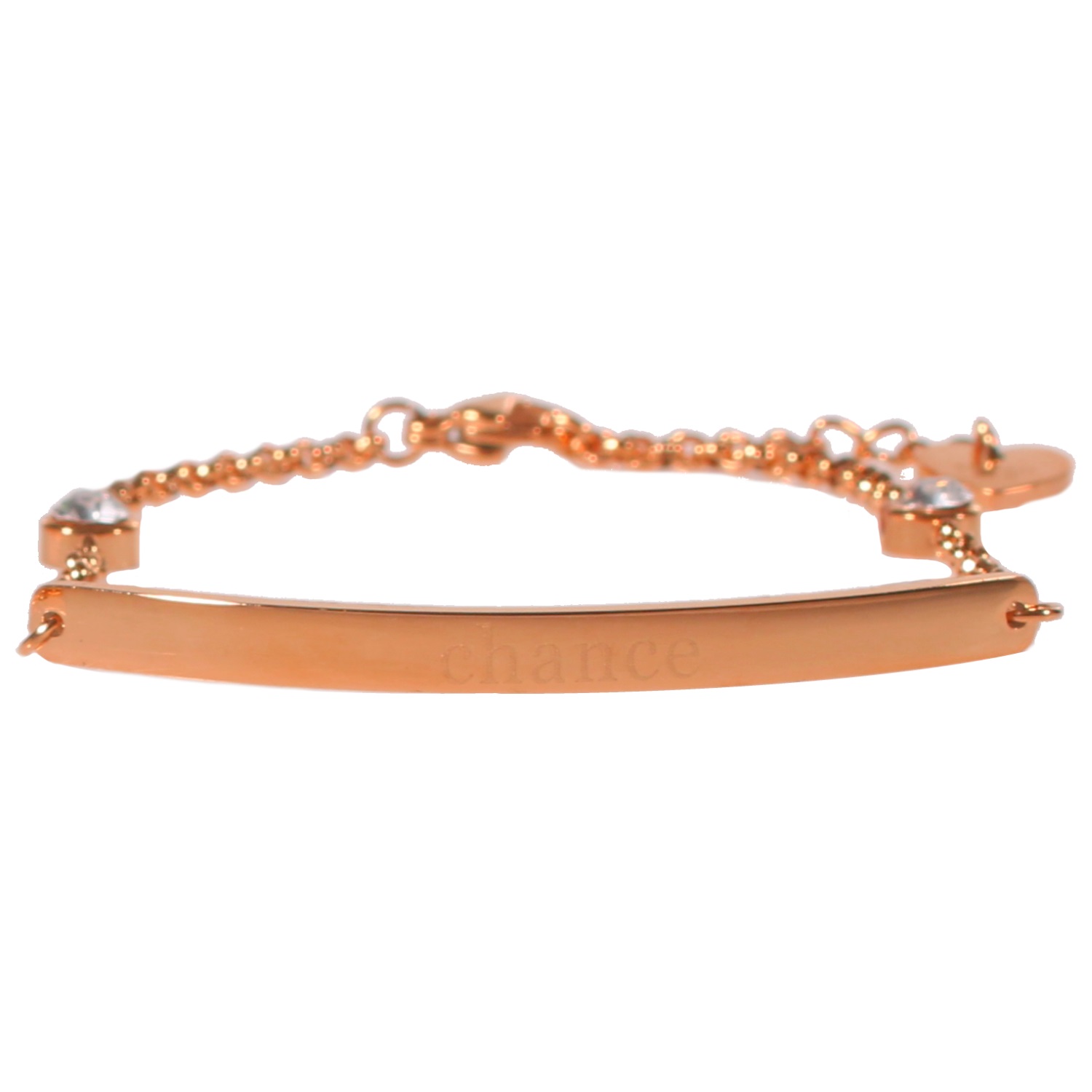 Bracelet en acier rosé et cristaux synthétiques. Chance  Adolescent Adulte Femme Fille Indémodable Message