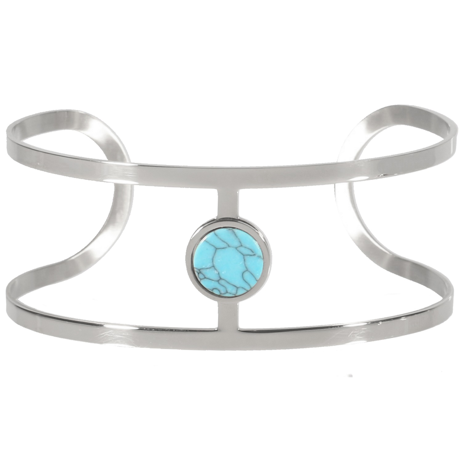 Description Bracelet manchette en acier 316L argenté et pierre d'imitation turquoise. Cliquez sur une matière, un thème, une couleur ou une collection pour voir tous les articles associés.
