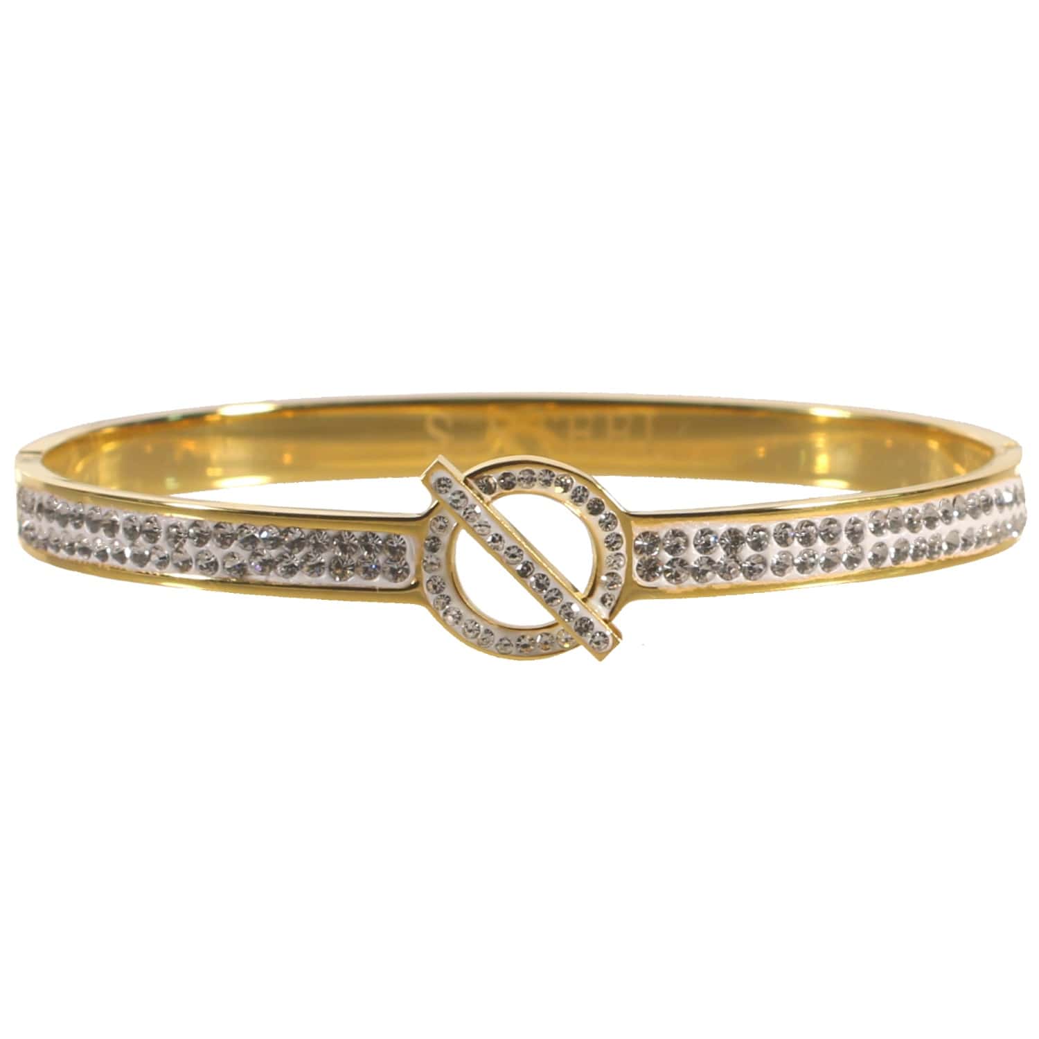Description Bracelet jonc rigide avec cercle barré en acier doré et strass en verre. Largeur 12 mm Diamètre 58 mm [Guide des tailles] Matière(s) Acier , Verre . L'acier utilisé dans la bijouterie existe sous plusieurs qualités. Nous utilisons principalement la qualité 316L, qualité qui est utilisée en chirurgie. Cet acier est donc inoxydable et reste très résistant. Fermoir Charnière avec cran Couleur(s) dominante(s) Doré Public Adolescent , Adulte . Genre Femme , Fille . Saison Indémodable . Collection Strass addict Cliquez sur une matière, un thème, une couleur ou une collection pour voir tous les articles associés.