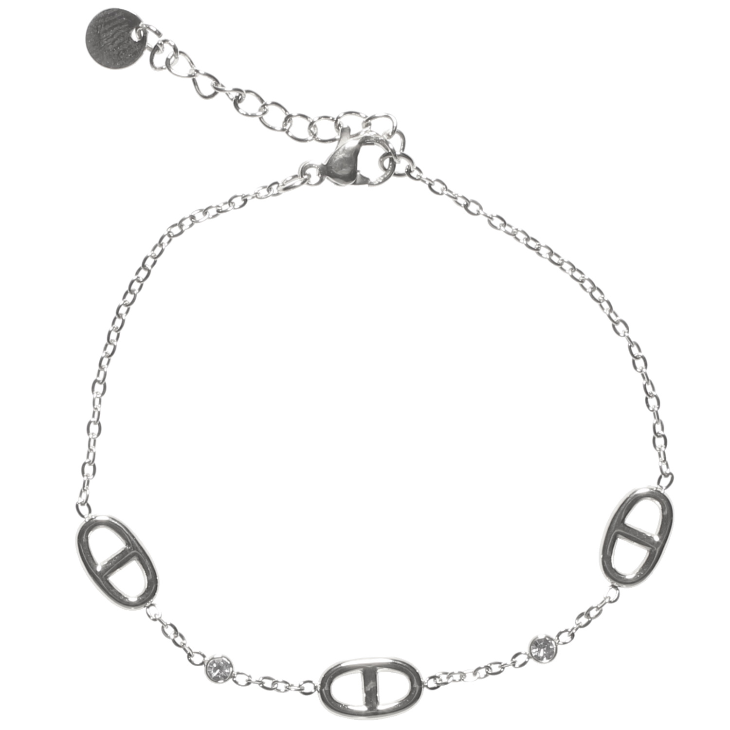 Description Bracelet composé d'une chaîne en acier argenté et de deux cristaux sertis clos. Fermoir mousqueton avec 3 cm. Longueur 16+3 cm [Guide des tailles] Largeur 6 mm Matière(s) Acier , Verre . L'acier utilisé dans la bijouterie existe sous plusieurs qualités. Nous utilisons principalement la qualité 316L, qualité qui est utilisée en chirurgie. Cet acier est donc inoxydable et reste très résistant. Fermoir Mousqueton Couleur(s) dominante(s) Argenté Public Adolescent , Adulte . Genre Femme , Fille . Saison Indémodable . Cliquez sur une matière, un thème, une couleur ou une collection pour voir tous les articles associés.
