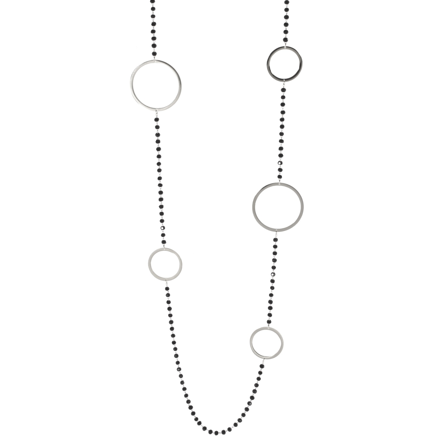 Description Collier sautoir avec cercles en acier argenté et perles de couleur noire. Longueur 98+4 cm [Guide des tailles] Largeur 32 mm Matière(s) Acier , Rocaille . L'acier utilisé dans la bijouterie existe sous plusieurs qualités. Nous utilisons principalement la qualité 316L, qualité qui est utilisée en chirurgie. Cet acier est donc inoxydable et reste très résistant. Fermoir Mousqueton Couleur(s) dominante(s) Argenté , Noir Public Adolescent , Adulte . Genre Femme , Fille . Saison Indémodable . Cliquez sur une matière, un thème, une couleur ou une collection pour voir tous les articles associés.