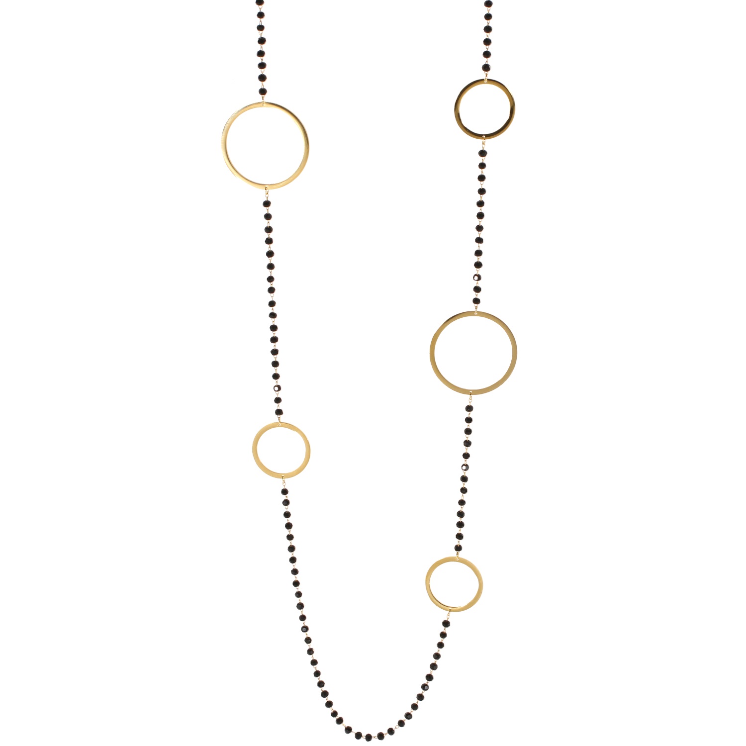Description Collier sautoir avec cercles en acier doré et perles de couleur noire. Longueur 98+4 cm [Guide des tailles] Largeur 32 mm Matière(s) Acier , Rocaille . L'acier utilisé dans la bijouterie existe sous plusieurs qualités. Nous utilisons principalement la qualité 316L, qualité qui est utilisée en chirurgie. Cet acier est donc inoxydable et reste très résistant. Fermoir Mousqueton Couleur(s) dominante(s) Doré , Noir Public Adolescent , Adulte . Genre Femme , Fille . Saison Indémodable . Cliquez sur une matière, un thème, une couleur ou une collection pour voir tous les articles associés.