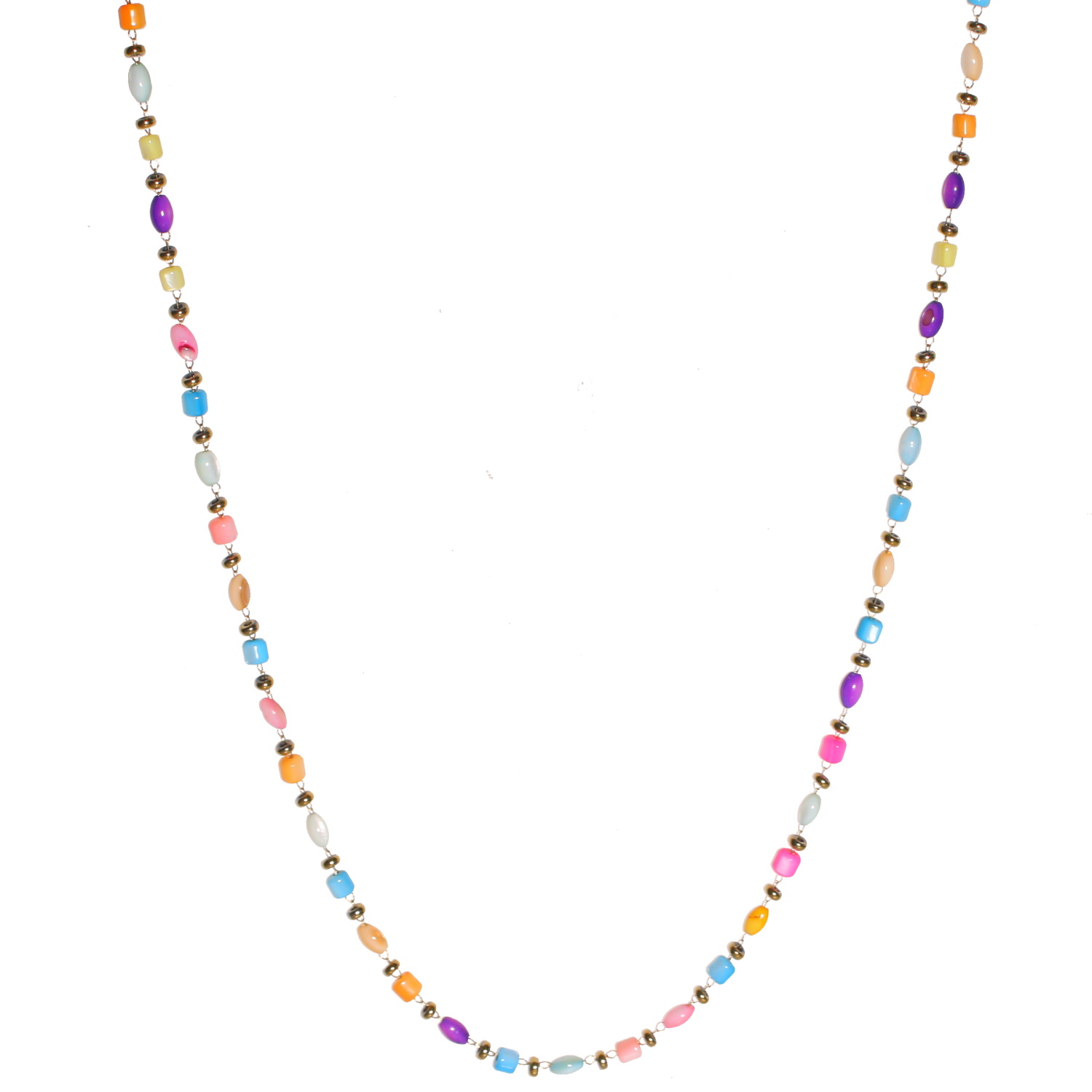 Description Collier composé d'une chaîne en acier doré et de perles multicolores. Fermoir mousqueton avec 5 cm de rallonge. Cliquez sur une matière, un thème, une couleur ou une collection pour voir tous les articles associés.
