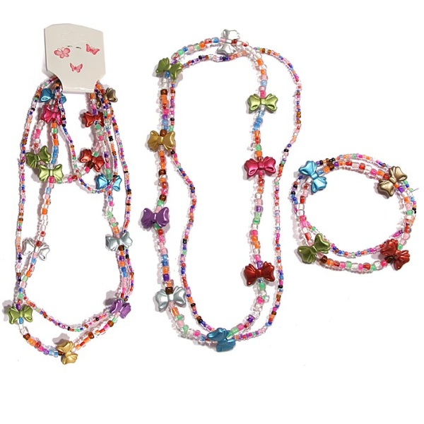 Parure fantaisie composée d'un collier et d'un bracelet en plastique de couleur.