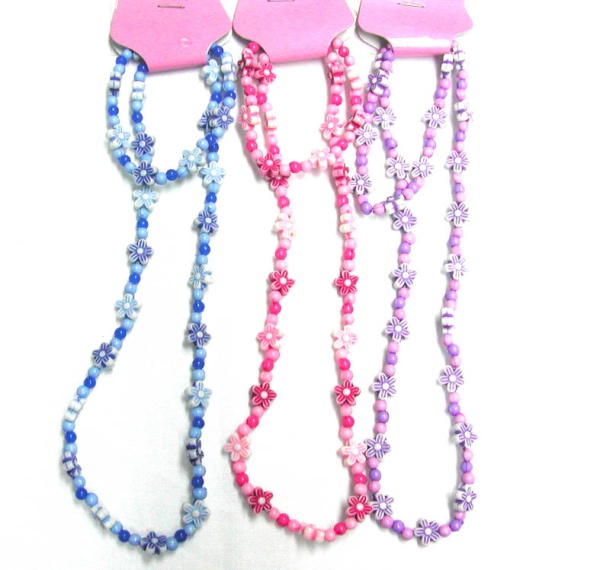 Parure fantaisie en plastique de couleur composée d'un bracelet et d'un collier assortis.