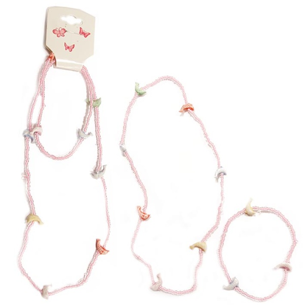Parure fantaisie en plastique de couleur composée d'un collier et d'un bracelet assortis.