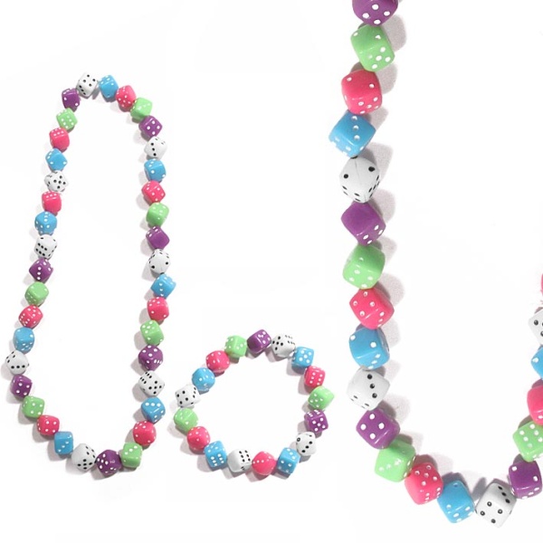 Parure fantaisie en plastique de couleur composée d'un collier et d'un bracelet assortis.