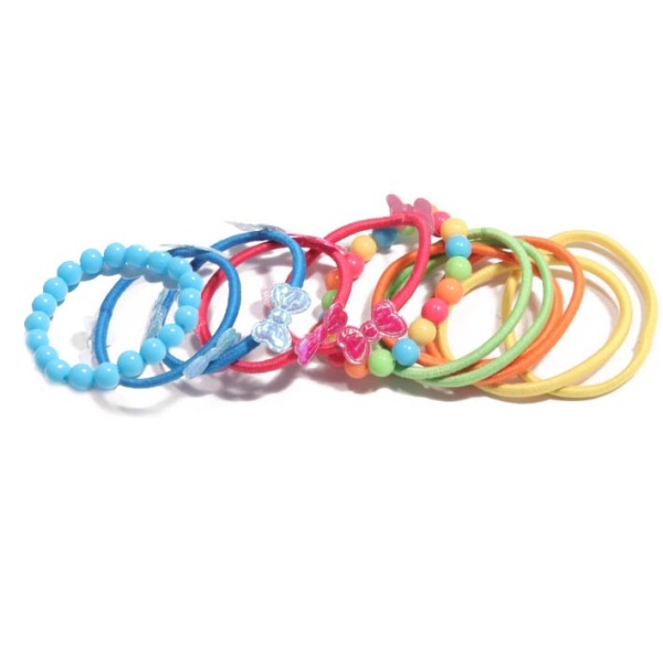Lot de 2 bracelets fantaisie et de 10 élastiques pour enfants.