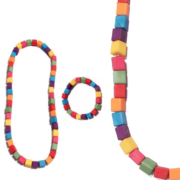 Parure fantaisie en plastique coloré composé d'un collier et d'un bracelet assorti.