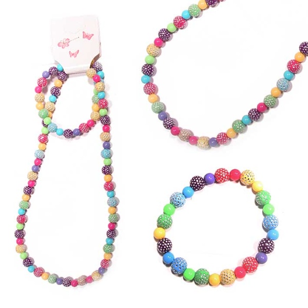 Parure fantaisie en plastique composée d'un collier et d'un bracelet assortis.