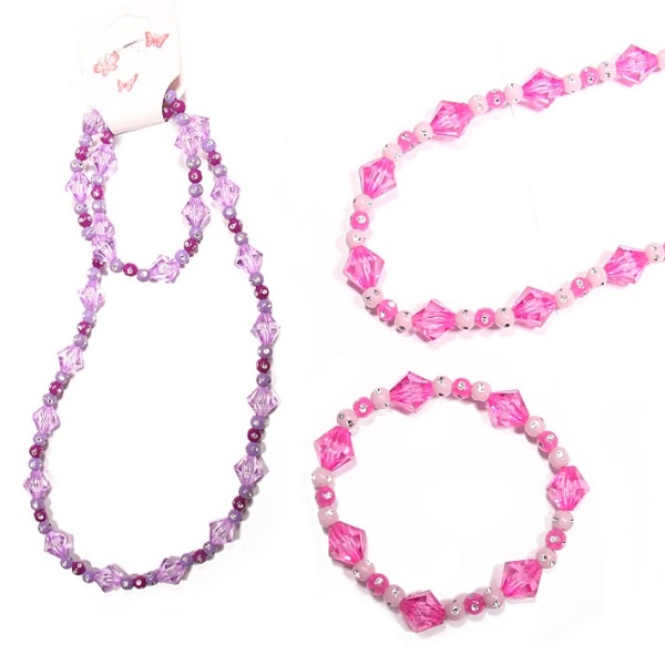 Parure fantaisie en plastique composée d'un collier et d'un bracelet assortis.