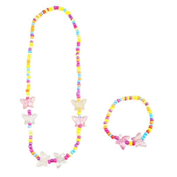 Parure fantaisie en plastique composée d'un collier et d'un bracelet assortis.