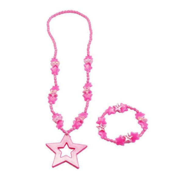 Parure en plastique comprenant un collier et un bracelet assortis.