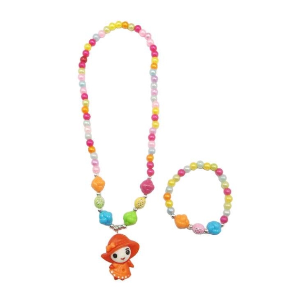 Parure fantaisie en plastique composée d'un collier et d'un bracelet assortis.