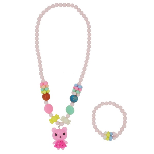 Parure fantaisie en plastique composée d'un collier et d'un bracelet assortis.