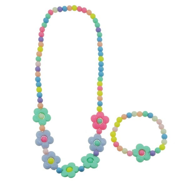Parure fantaisie en plastique composée d'un collier et d'un bracelet assortis.