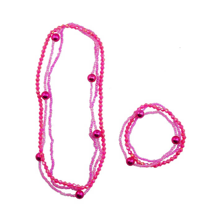 Parure fantaisie en plastique composée de 3 colliers et de 3 bracelets assortis.