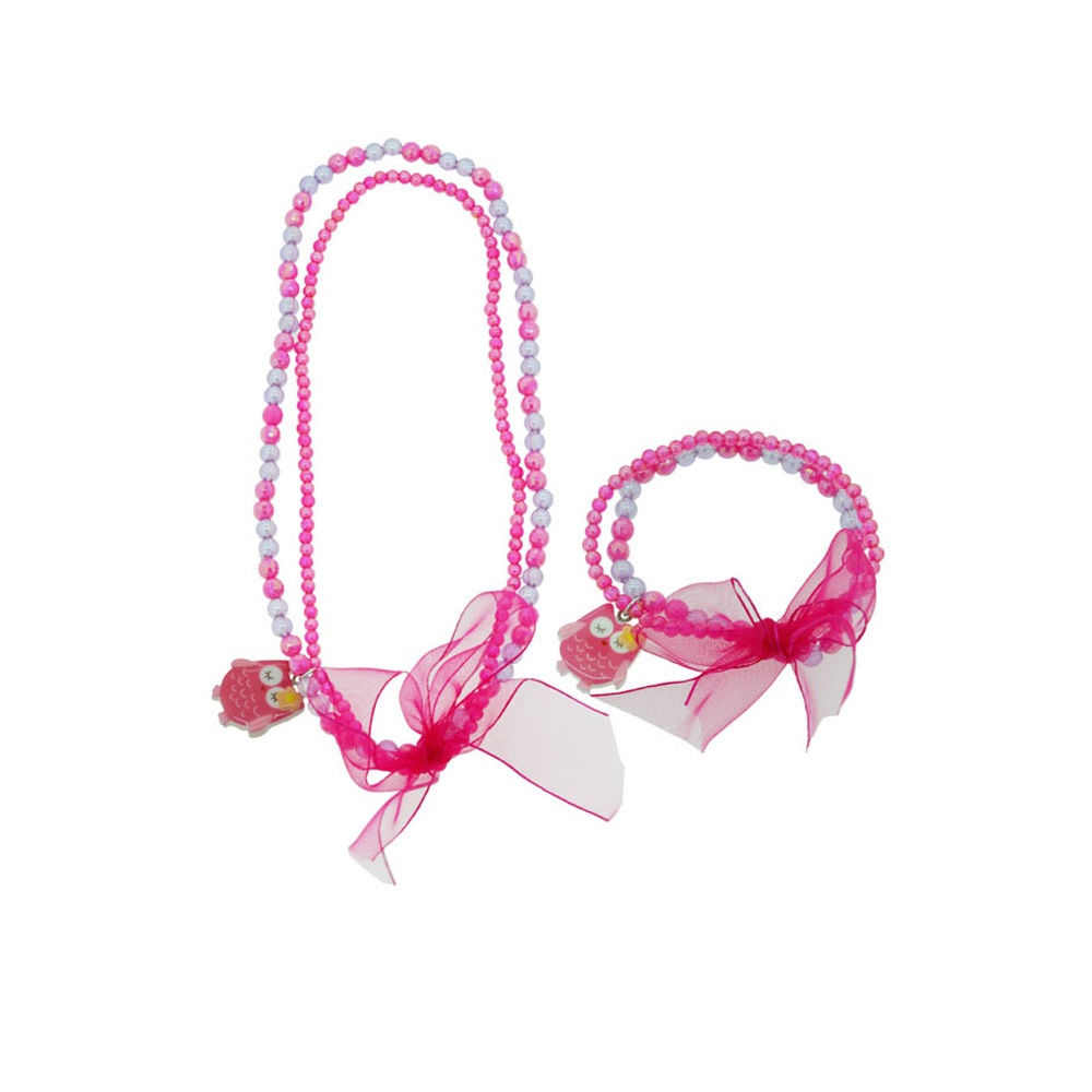Parure fantaisie en plastique et textile composée d'un collier et d'un bracelet assortis.