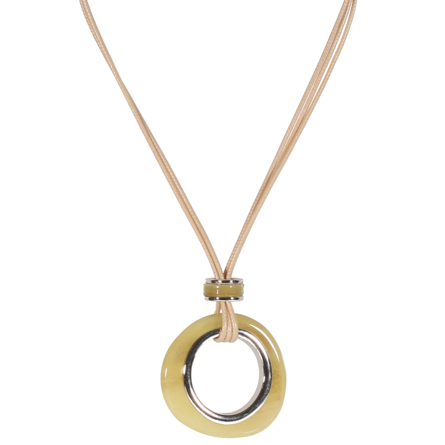 Collier fantaisie multi rangs en métal argenté, cordons en coton ciré et plastique de couleur.