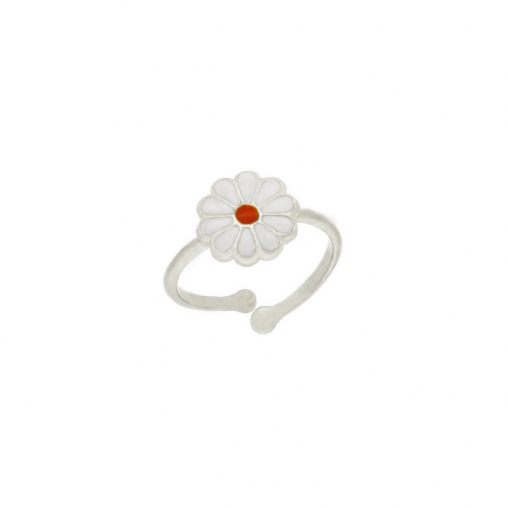 Bague marguerite en argent 925/000 rhodié et émail.