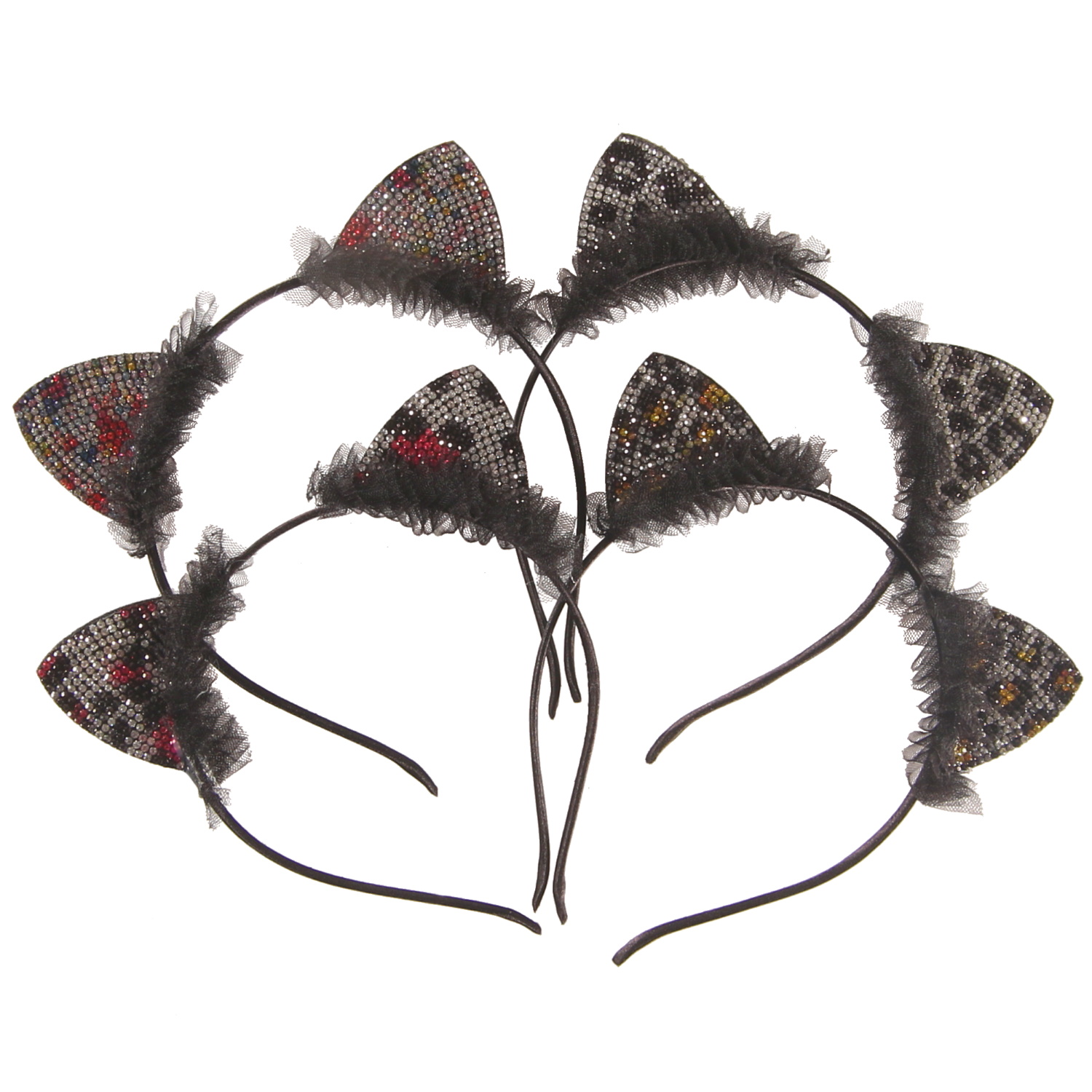 Serre-tête oreilles de chat en textile et strass.