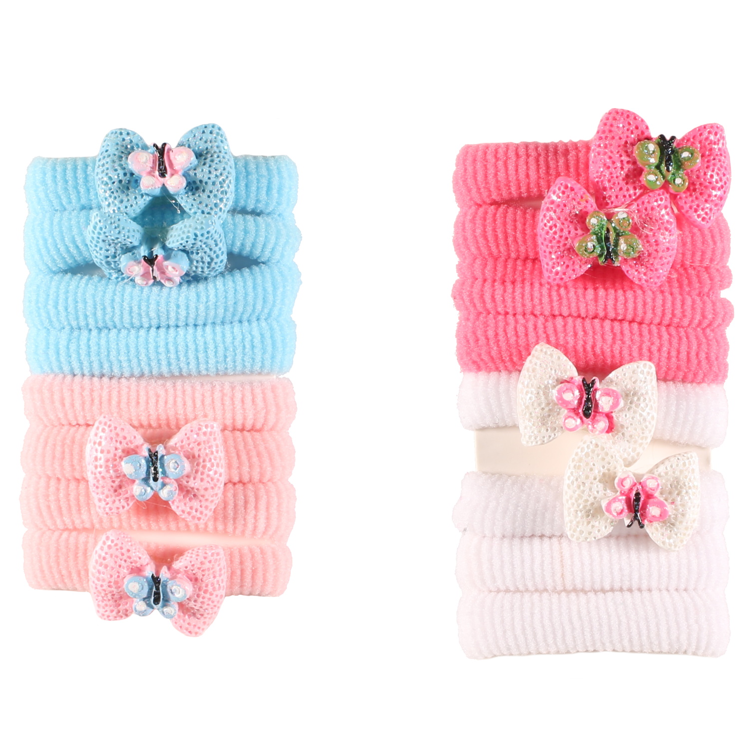 Lot de 8 élastiques en textile avec pour 4 élastiques des papillons sur des nœuds papillon.