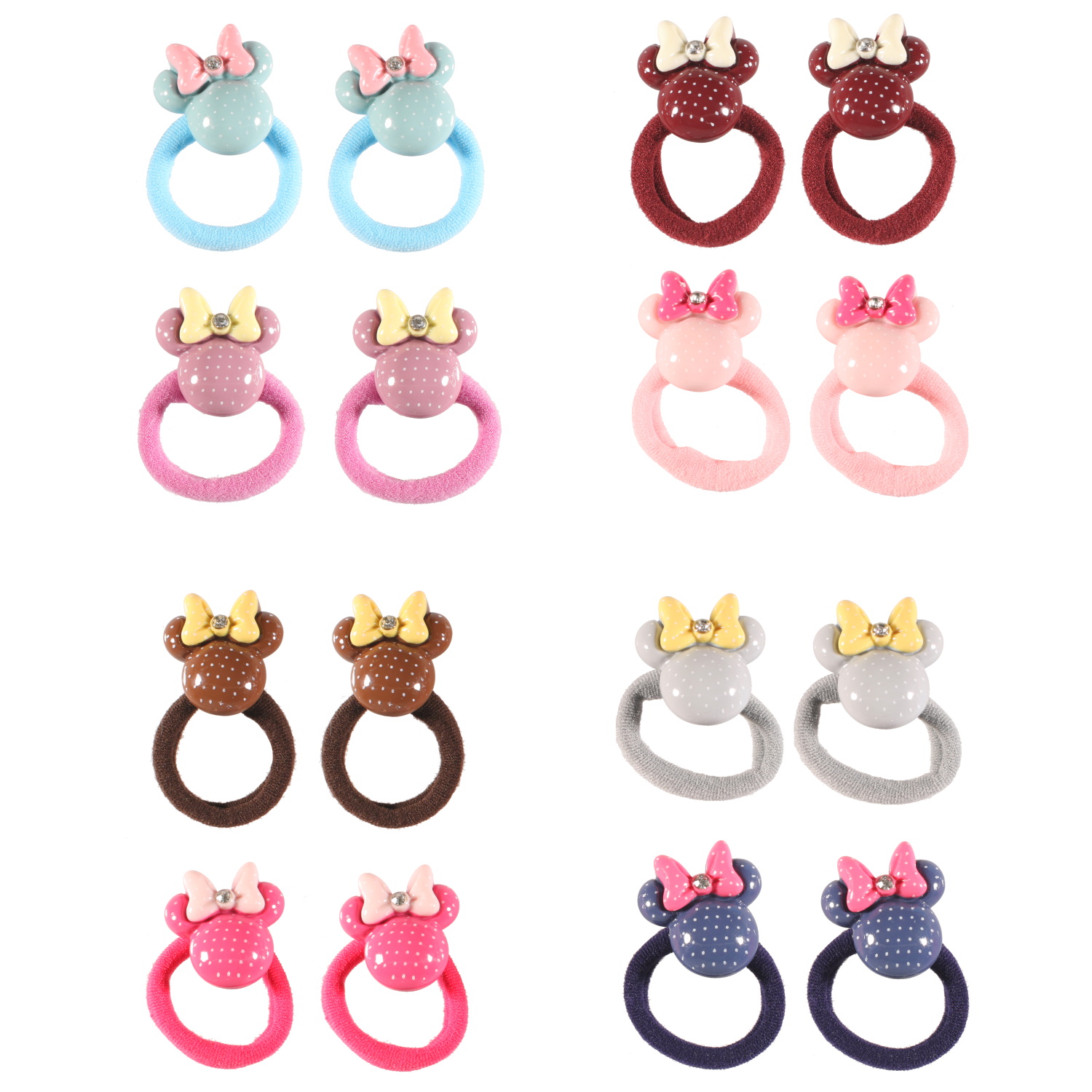 Lot de 4 élastiques en textile avec tête de Minnie surmontée d'un strass.