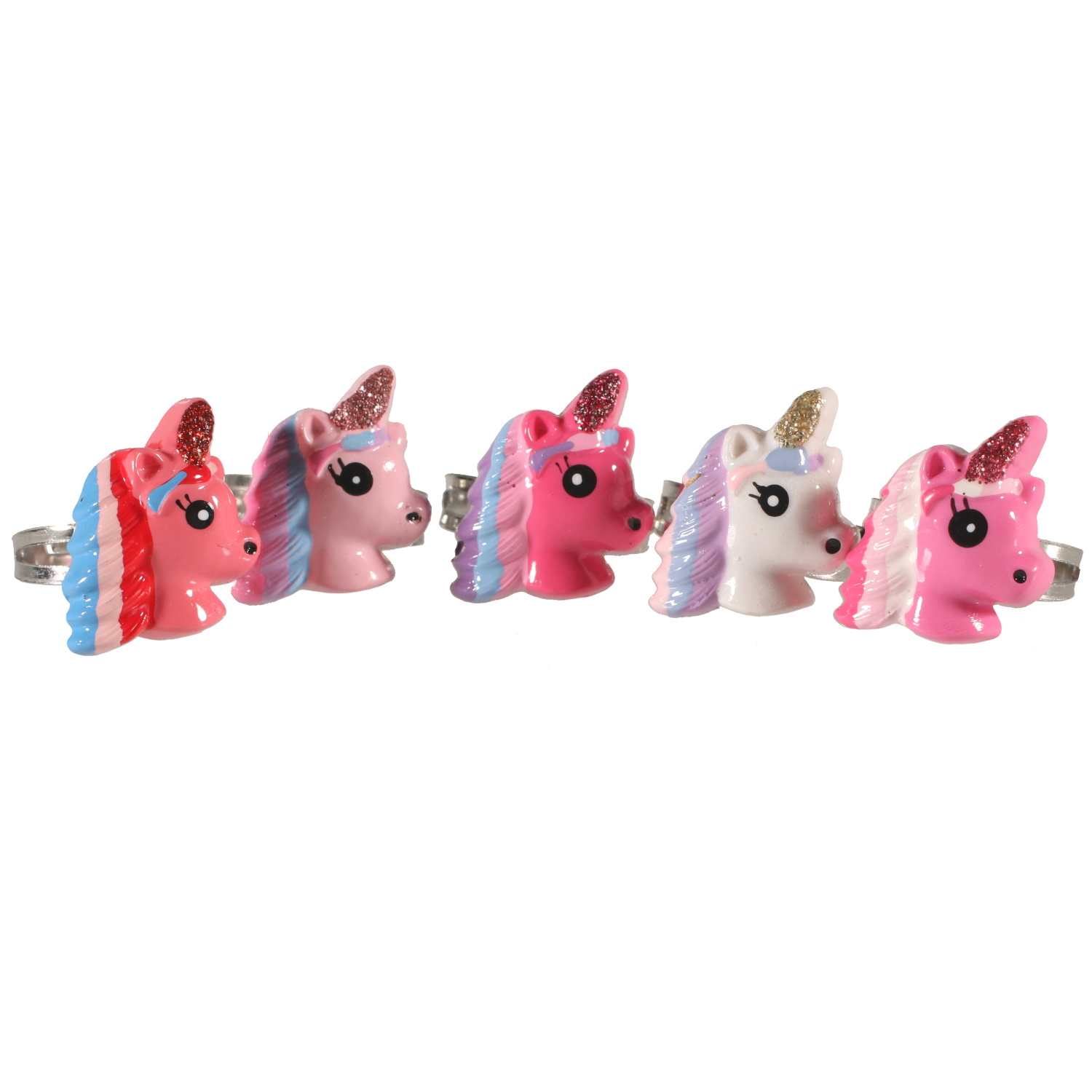 Bague licorne pour enfant en métal argenté et matière synthétique de couleur.