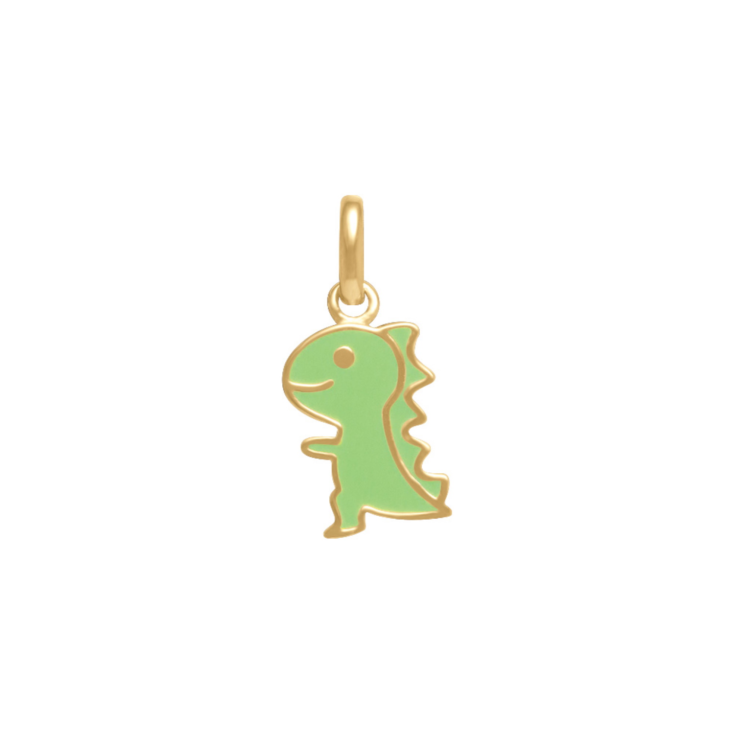 Pendentif pour enfant au motif de dinosaure en plaqué or jaune 18 carats et en émail de couleur.