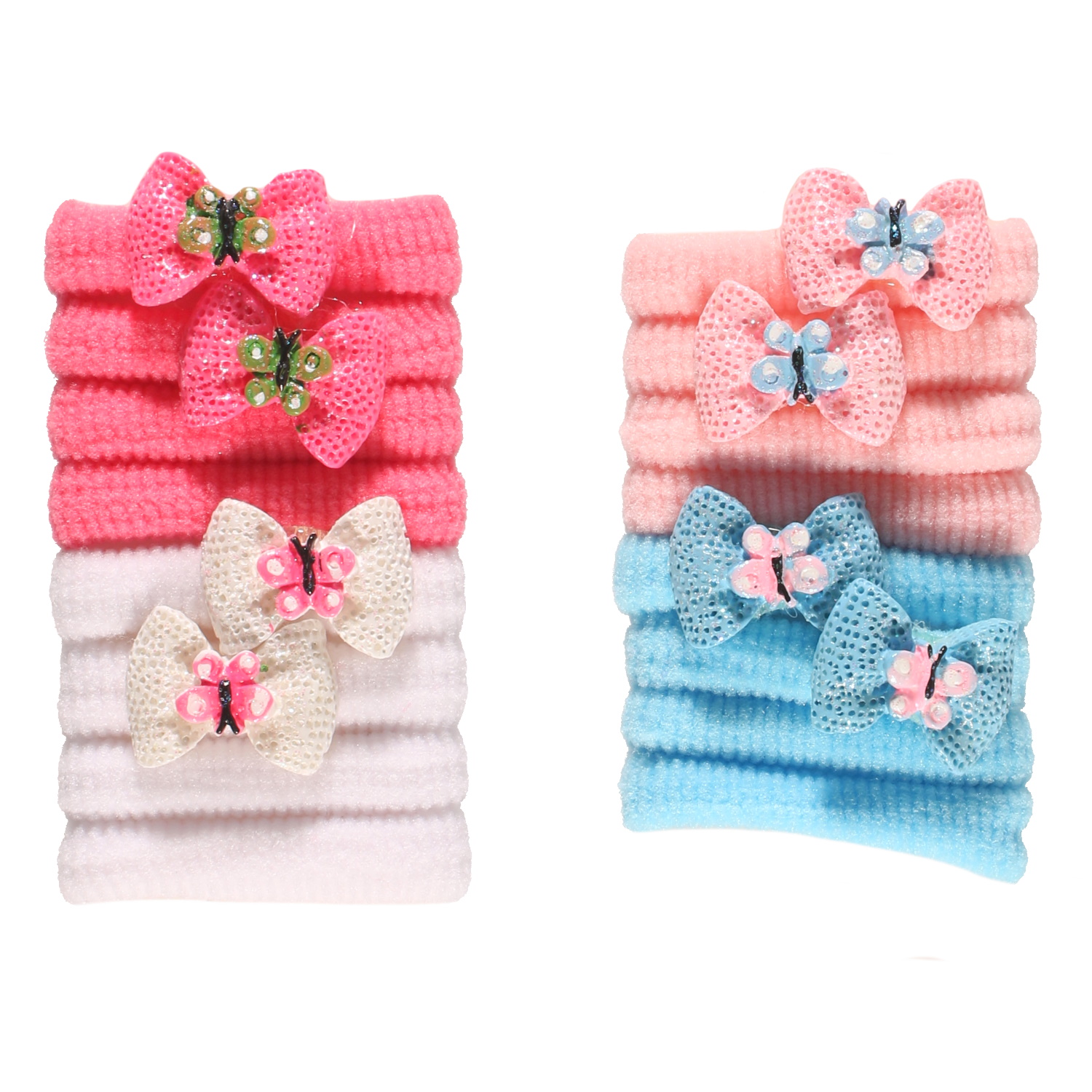 Lot de 8 élastiques pour enfant en textile de couleur avec nœud papillon et papillon en plastique.