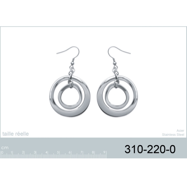Description Boucles d'oreilles en acier. Largeur 35 mm Hauteur 60 mm Matière(s) Acier . L'acier utilisé dans la bijouterie existe sous plusieurs qualités. Nous utilisons principalement la qualité 316L, qualité qui est utilisée en chirurgie. Cet acier est donc inoxydable et reste très résistant. Fermoir Crochets Couleur(s) dominante(s) Argenté Public Adulte . Genre Femme . Saison Indémodable . Cliquez sur une matière, un thème, une couleur ou une collection pour voir tous les articles associés.