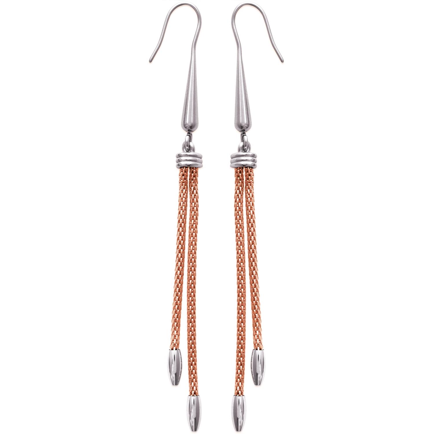 Description Boucles d'oreilles en acier argenté et acier rosé. Largeur 6 cm Hauteur 98 mm Matière(s) Acier . L'acier utilisé dans la bijouterie existe sous plusieurs qualités. Nous utilisons principalement la qualité 316L, qualité qui est utilisée en chirurgie. Cet acier est donc inoxydable et reste très résistant. Fermoir Crochets Couleur(s) dominante(s) Argenté , Cuivré Public Adulte . Genre Femme . Saison Indémodable . Cliquez sur une matière, un thème, une couleur ou une collection pour voir tous les articles associés.