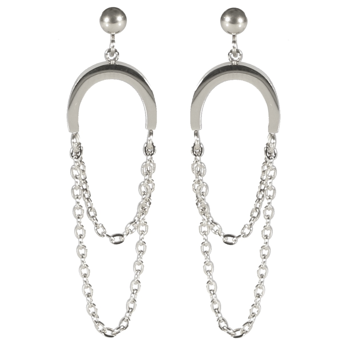 Description Boucles d'oreilles pendantes avec double chaînettes en acier argenté. Largeur 12 mm Hauteur 46 mm Matière(s) Acier . L'acier utilisé dans la bijouterie existe sous plusieurs qualités. Nous utilisons principalement la qualité 316L, qualité qui est utilisée en chirurgie. Cet acier est donc inoxydable et reste très résistant. Fermoir Tiges poussettes Couleur(s) dominante(s) Argenté Public Adolescent , Adulte . Genre Femme , Fille . Saison Indémodable . Cliquez sur une matière, un thème, une couleur ou une collection pour voir tous les articles associés.