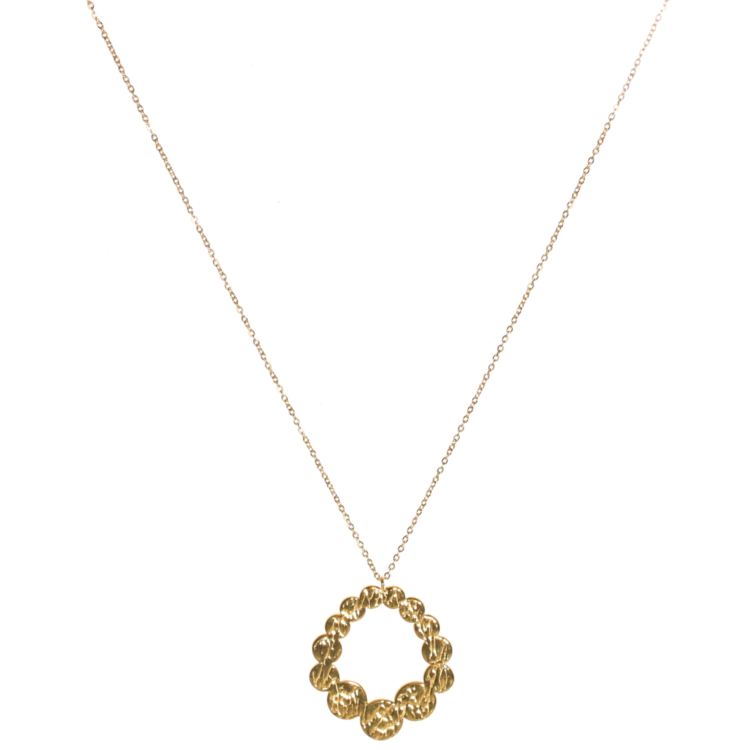 Description Collier composé d'une chaîne et d'un pendentif en forme de cercle de pastilles rondes en acier doré. Fermoir mousqueton avec 7 cm de rallonge. Longueur 38+7 cm [Guide des tailles] Matière(s) Acier . L'acier utilisé dans la bijouterie existe sous plusieurs qualités. Nous utilisons principalement la qualité 316L, qualité qui est utilisée en chirurgie. Cet acier est donc inoxydable et reste très résistant. Fermoir Mousqueton À noter Pendentif 32x35 mm Couleur(s) dominante(s) Doré Public Adolescent , Adulte . Genre Femme , Fille . Saison Indémodable . Cliquez sur une matière, un thème, une couleur ou une collection pour voir tous les articles associés.