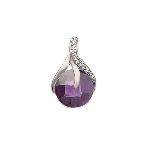 Pendentif en argent 925/000 rhodié, oxyde de zirconium et pierre synthétique violette.