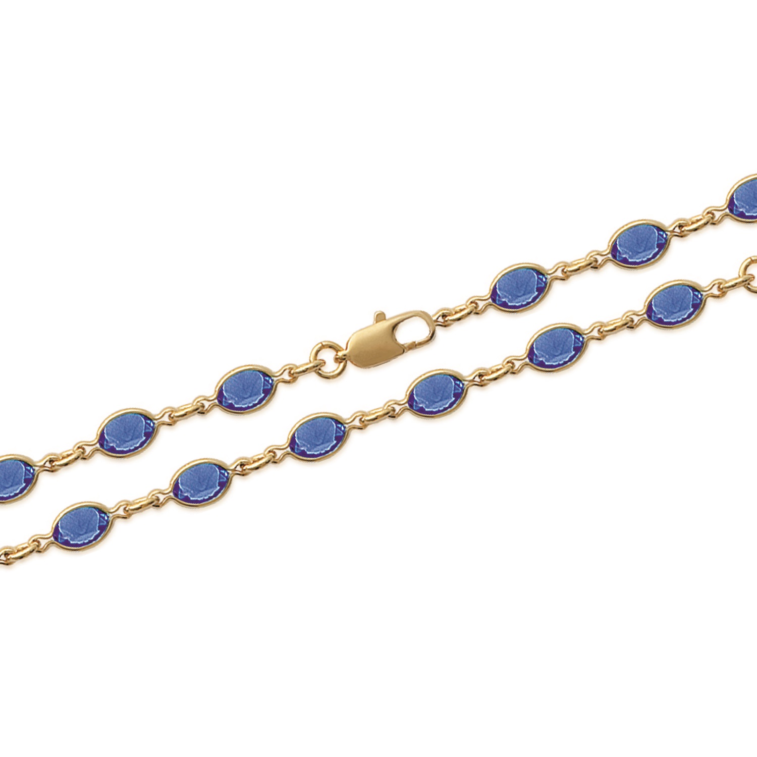 Bracelet en plaqué-or et verre serti couleur bleue.