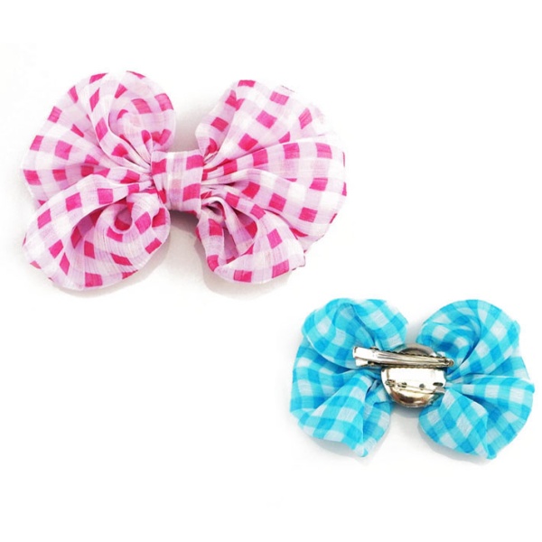 Barrette cheveux en métal argenté et textile de couleur.