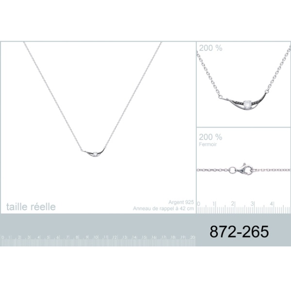 Collier en argent 925/000 rhodié, oxyde de zirconium et pierres synthétiques.