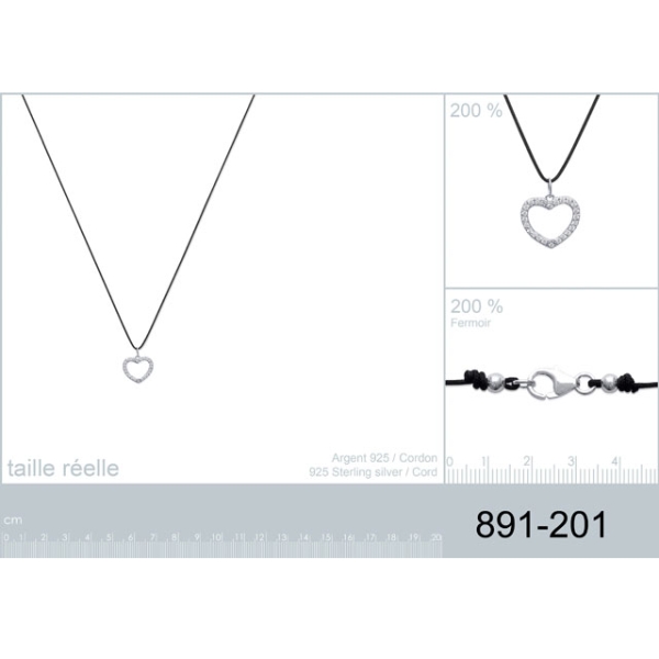Collier en argent 925/000 rhodié et oxyde de zirconium. Coeur Cordon  Adulte Amour Femme Indémodable Collier en argent 925/000 rhodié et oxyde de zirconium. Coeur Cordon  Adulte Amour Femme Indémodable