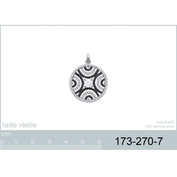 Pendentif en argent 925/000 rhodié, oxyde de zirconium et pierres synthétiques.