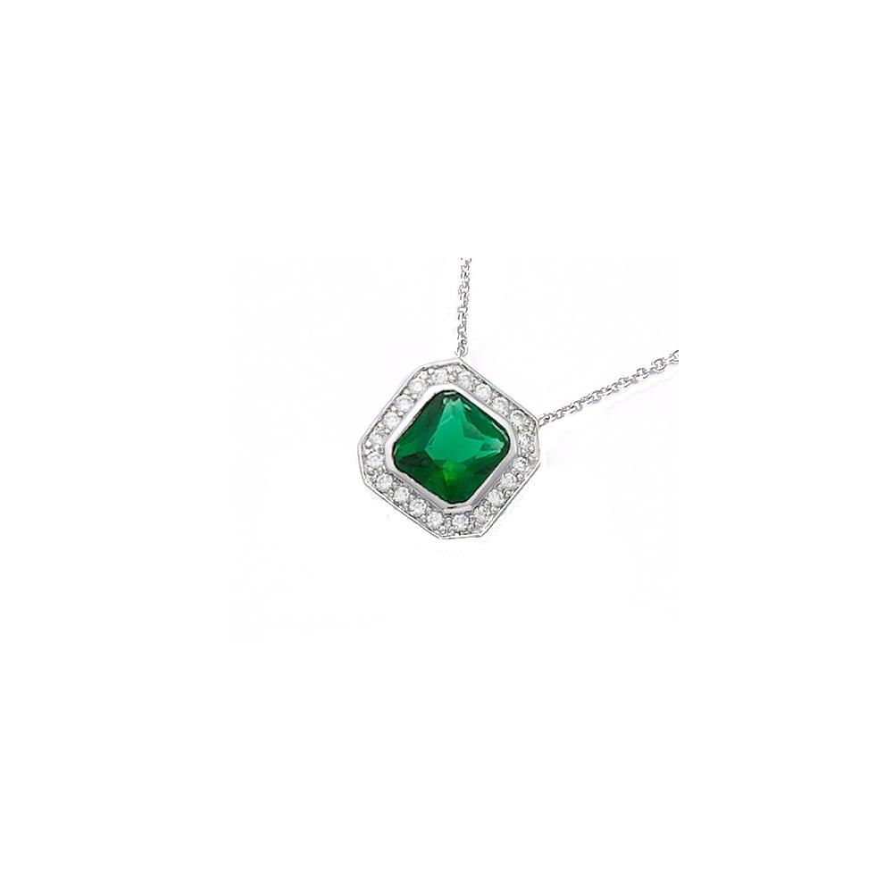 Collier en argent 925/000 rhodié, oxyde de zirconium et verre. Carré  Adulte Femme Indémodable Collier en argent 925/000 rhodié, oxyde de zirconium et verre. Carré  Adulte Femme Indémodable