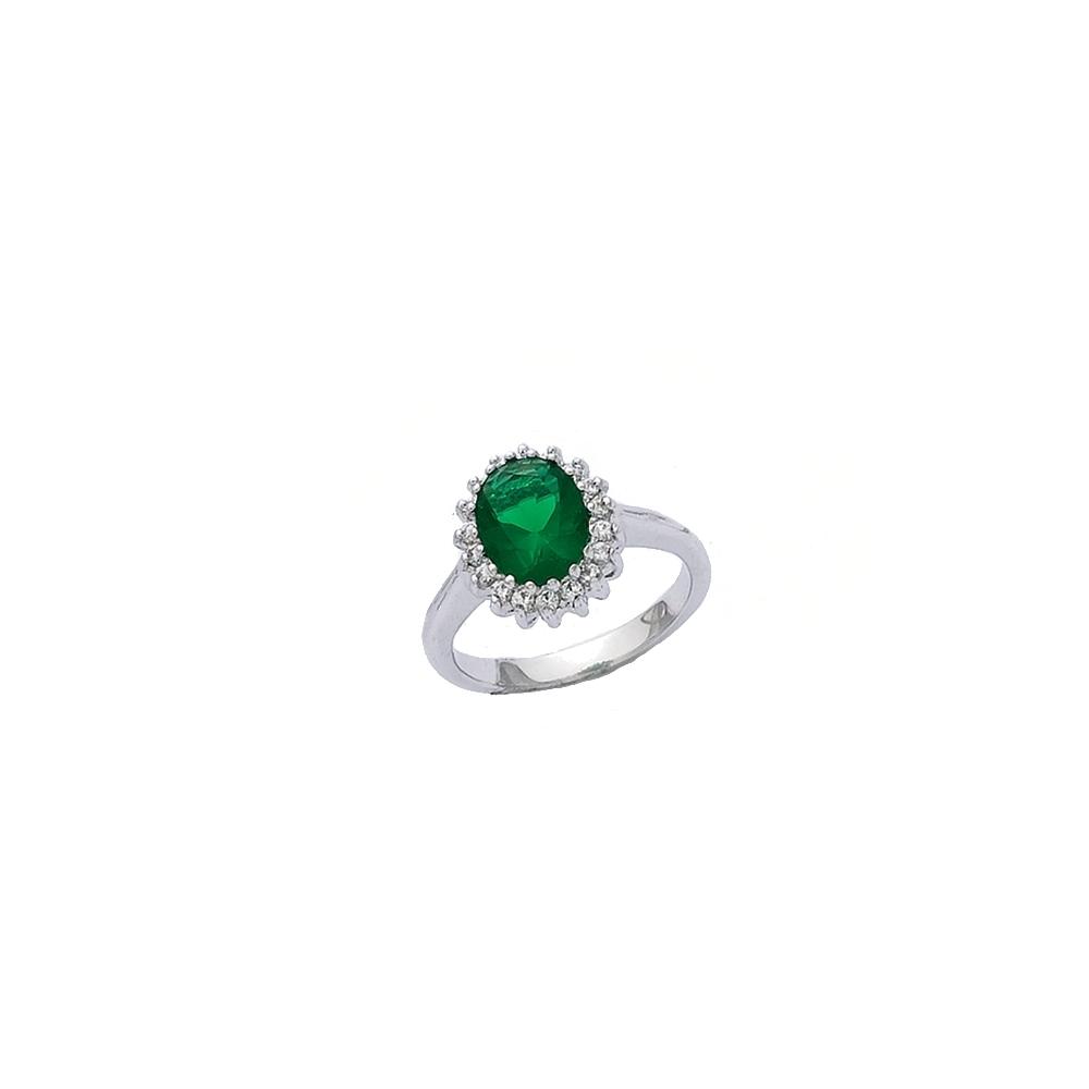 Bague en argent 925/000 rhodié, verre et oxyde de zirconium.