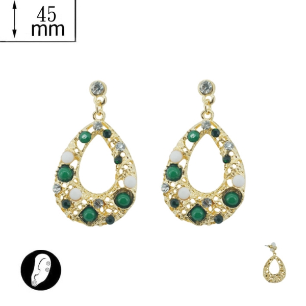 Boucles d'oreilles fantaisie en métal doré et verre.